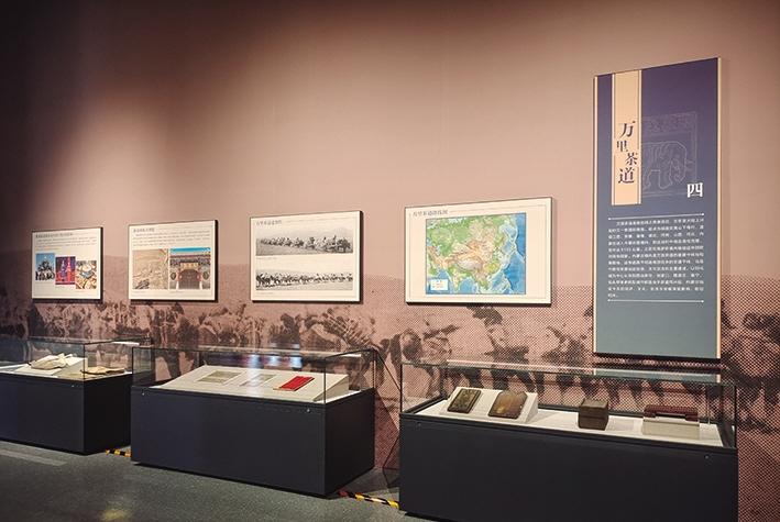 艺术家们完全打破壁垒,摆脱物象的束缚,用纯粹的点、线、面布展创作和宏观建构营造氛围;强调布展的意义不在于其形式美感,而在于它所传达的主题、观念、态度和内蕴。艺术家、策展人正是在这样的语境中,将形式探索与思想表达重新融合。不再依附于客观对象的固有色彩,而更加诉诸情感和文博艺术力量的表达。整个展馆藏青、莫兰蒂蓝、土黄被大量运用,沉稳庄重的,大地色系彰显文化的厚重与内敛。例如每个单元独占一面墙体,通体高约3米、宽约八九十公分,深灰色底板上搭配土黄线条与色块,黑白色图文醒目、温和,且深邃,似一位老人在对你讲那一段段的过往。艺术家在吸收、融合、拓展的过程中,提炼出基于东方美学的创作方向。在中国文博布展领域,一股力量正在汇聚与壮大,并非简单地用个体风格描绘中国图式,而是通过材料的拓展与方法的创新,探索一条将本土文化与科技媒介融会贯通的道路。成为一种在时间中沉淀、在积累中超越的心路历程。这种深植于本土文化基因的创作观和美学态度,被厚积、被唤醒、也被认同。每一次笔触、晕染的覆盖,既是对历史痕迹的追溯,也是新时代意义的生发。在展板、画布、纸张上,在文物的肌理间,在动态音视频的交响中,在色彩冲撞的视觉效果上,这些构成美与锻造美的手段和工具,凝结为一个平衡、和谐而充满内在张力的瞬间和审美世界的永恒!文化符号被提炼,人文关怀得到升华。