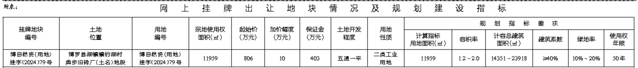 根据《招标拍卖挂牌出让国有建设用地使用权规定》(国土资源部令第39号)和《广东省国有建设用地使用权交易市场管理规定》(广东省人民政府令第304号)的规定,经批准,我局决定以网上挂牌方式公开出让下列1宗国有建设用地使用权。[公告具体内容请登录惠州市公共资源交易中心土地与矿业挂牌电子交易系统(https://tdky.hzggzyjy.cn/)]