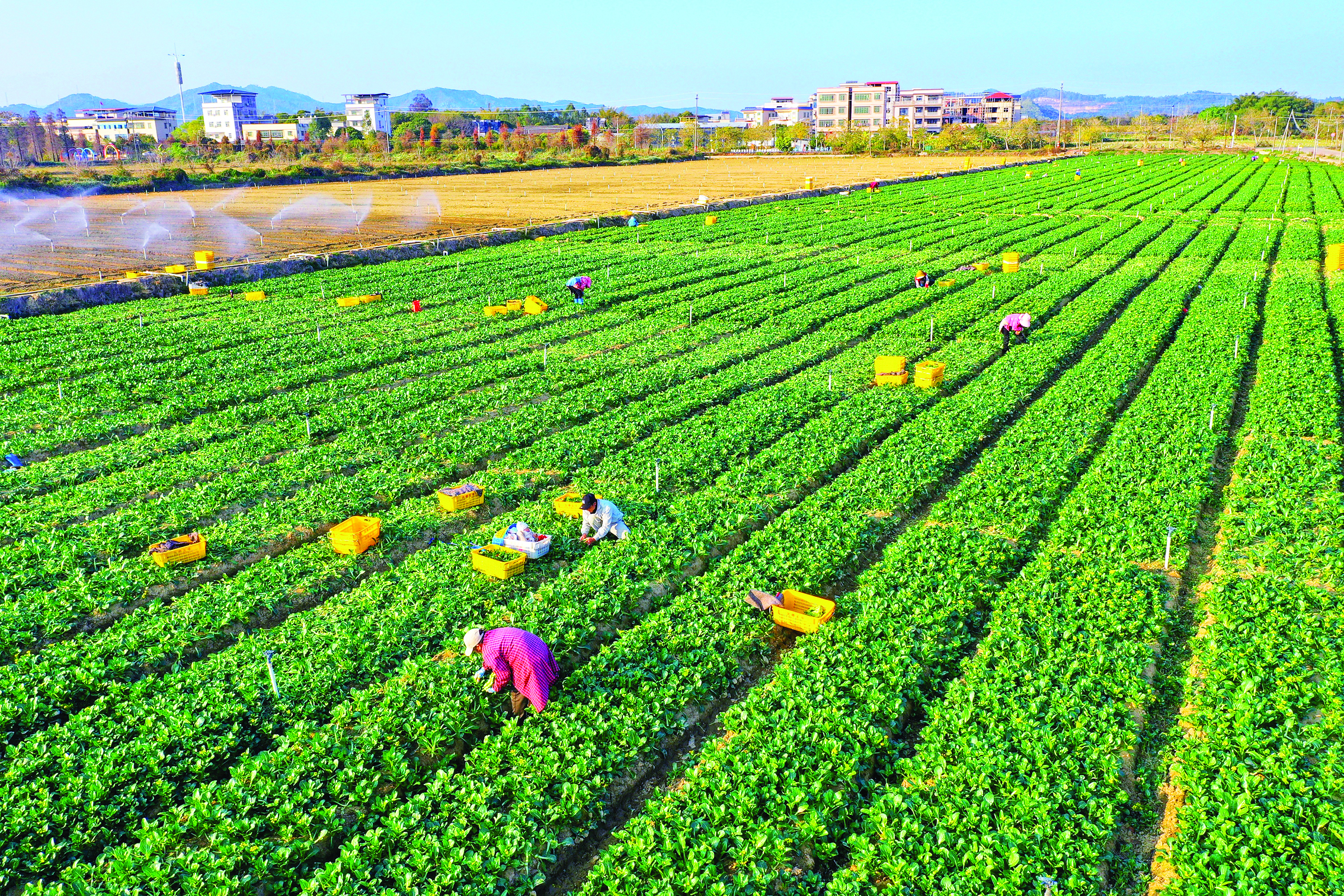 人勤春早采收忙。广袤的岭南大地上,不仅有春种的忙碌,也有收获的喜悦。近日,在惠城区水口街道万卢村凯联菜场,菜农们正忙着收割菜心,他们熟练地挥舞镰刀,动作敏捷而利落,把收割的菜心整齐地码在一旁。这些菜心经过严格的质量检测后,将走向市民的餐桌。