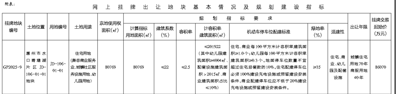 惠州市惠城区国有建设用地使用权网上挂牌出让公告
