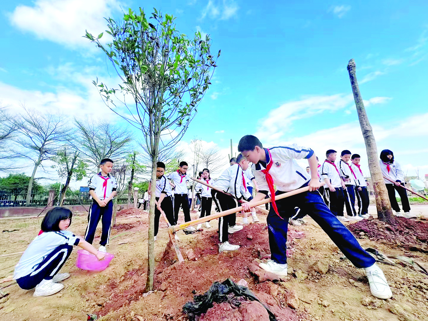 春风吹嫩芽,小手种希望。3月12日,迎来我国第47个植树节。我市部分中小学校组织学生开展植树活动,在青少年心中播撒绿色种子,植树添绿。