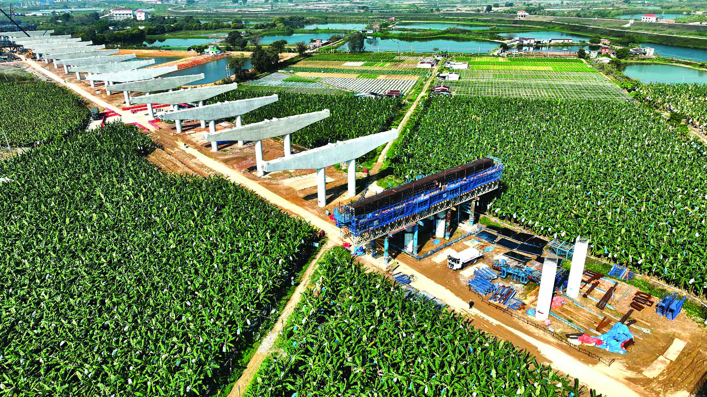 这是惠肇高速石湾镇路段,采用双柱大悬臂盖梁的结构形式施工,增加桥下利用空间。