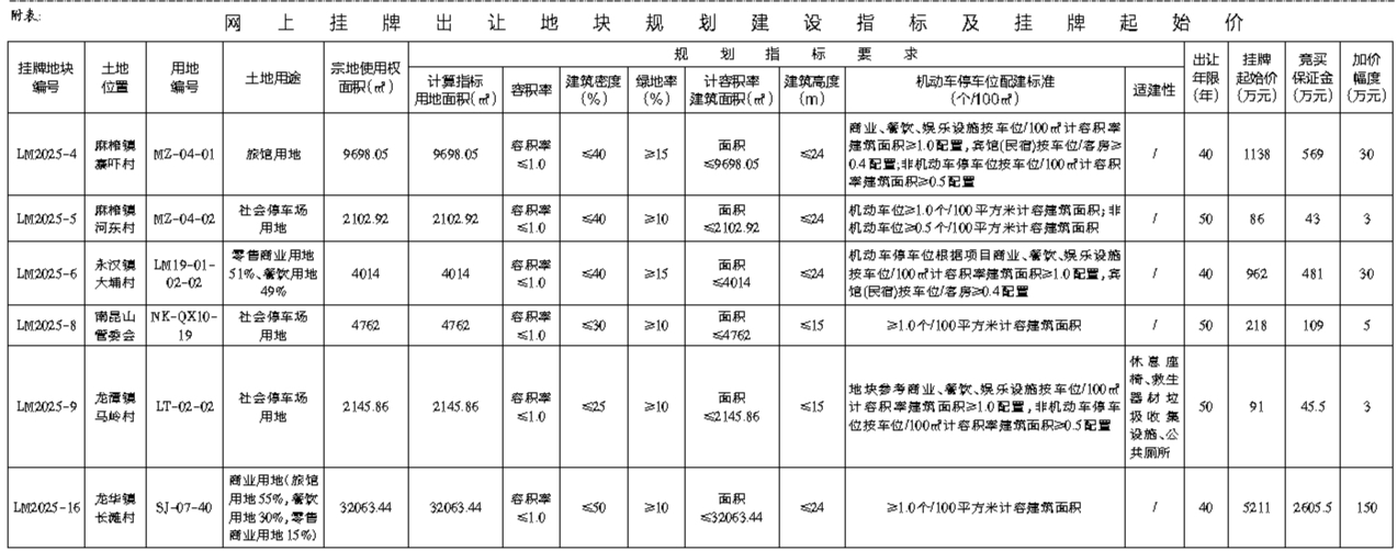 根据《招标拍卖挂牌出让国有建设用地使用权规定》(国土资源部令第39号)和《广东省土地使用权交易市场管理规定》(广东省人民政府令第304号)的规定,经批准,我局决定以网上挂牌方式公开出让6宗国有建设用地使用权。[公告具体内容请登陆惠州市公共资源交易中心土地与矿业网上挂牌交易系统(https://tdky.hzggzyjy.cn/)]