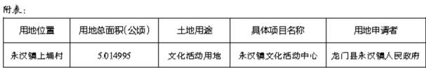 永汉镇政府向我局提出用地申请,我局拟将1宗国有土地使用权以划拨方式供地。根据《关于贯彻落实〈国务院关于促进节约集约用地的通知〉的通知》(国土资发[2008]16号)有关要求,现对该宗划拨用地的有关情况予以公示,公示时间为2025年3月27日至2025年4月6日(公示期间只接受书面意见)。公示期满无异议的,我局将拟定划拨供地方案报政府审批,办理划拨供地手续。