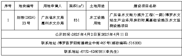 博罗县国有建设用地使用权划拨公示