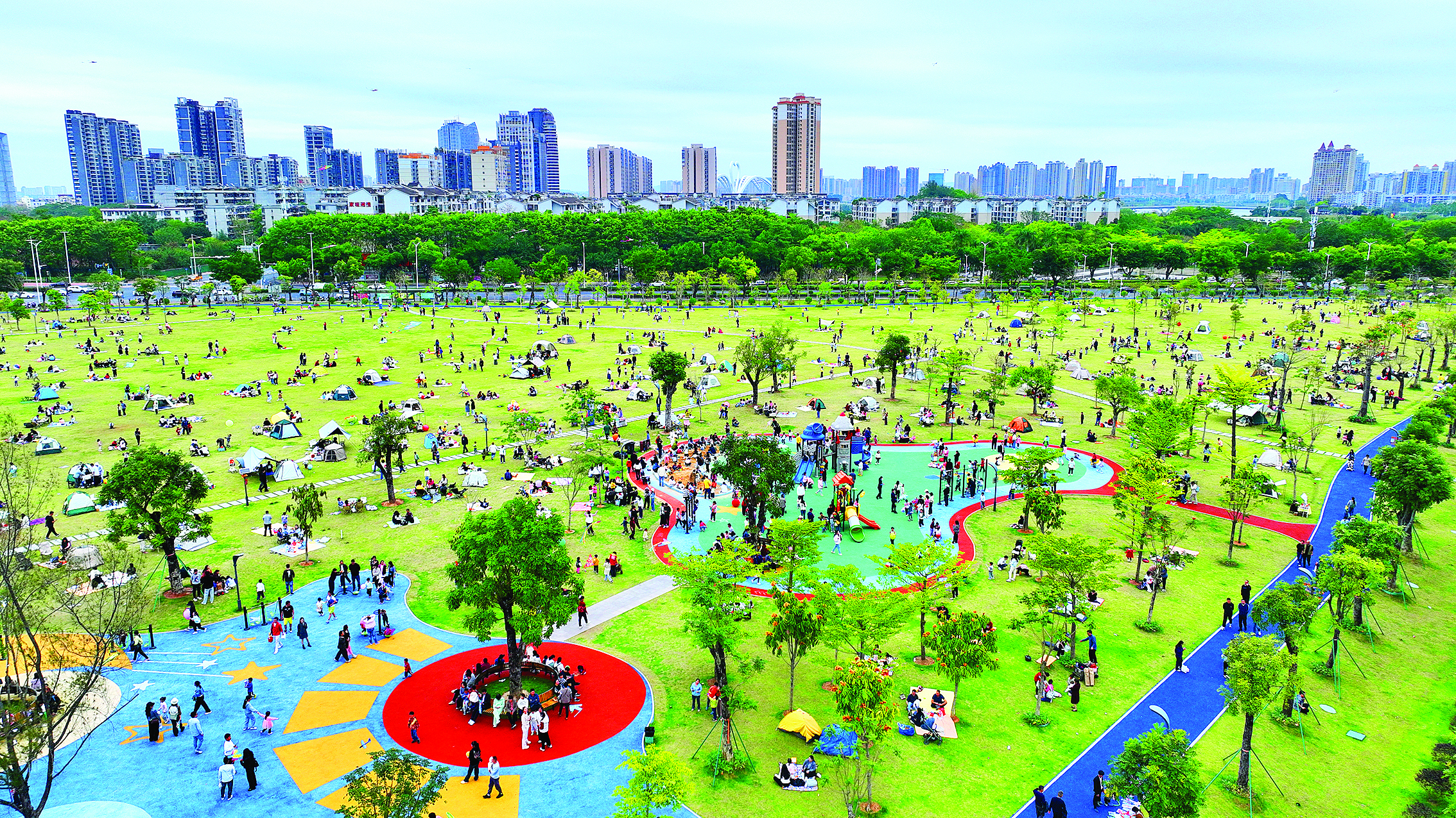 4月4日清明节,惠州江北市民公园的生态大草坪上人山人海,不少市民带娃来此踏青,他们在这里尽情地玩沙、滑滑梯、放风筝……人人都在乐享美好春光。