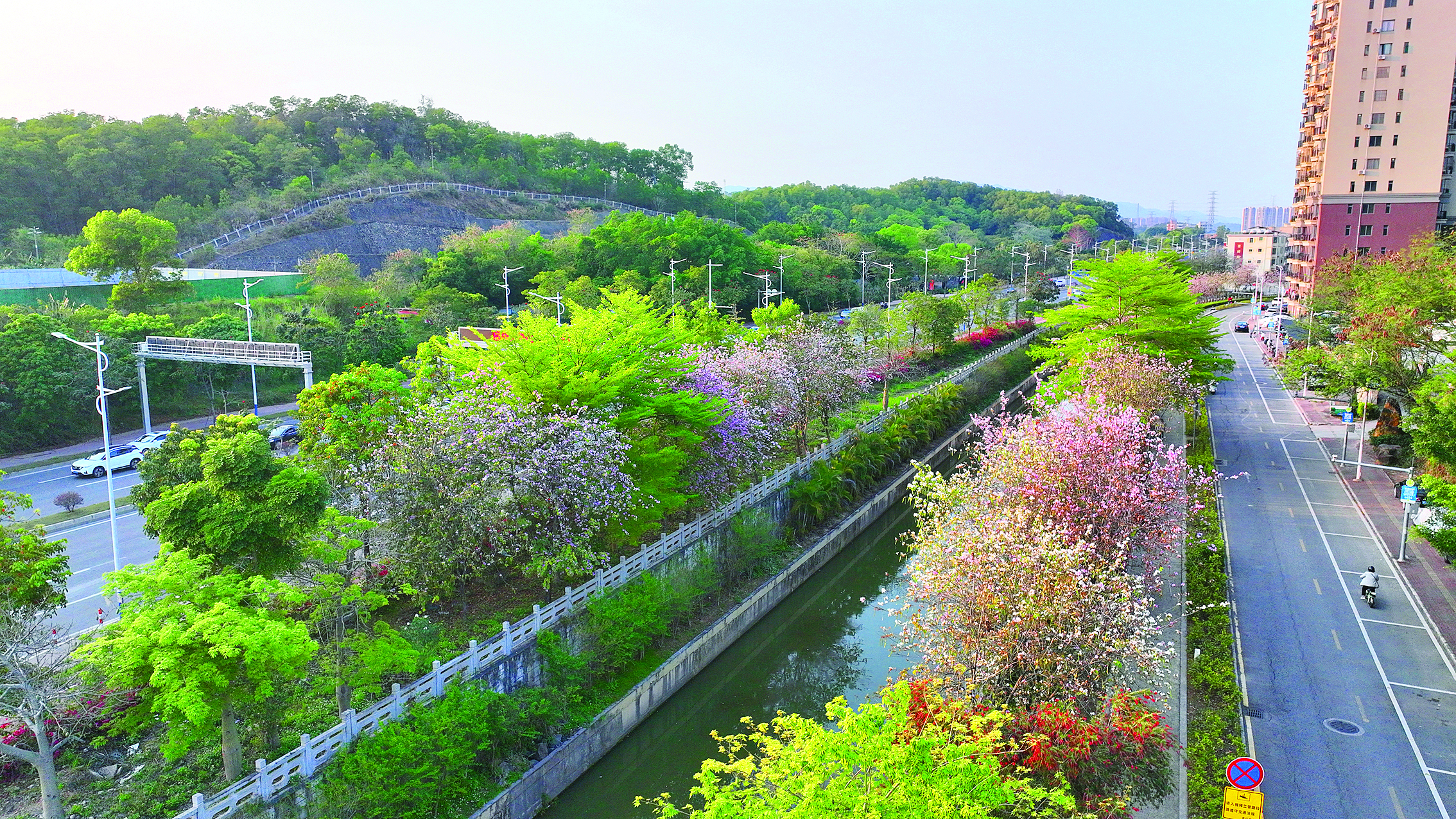 春天就是“处处生花”!各色春花接力绽放,花开之处,步步皆景。眼下,惠城区江南街道青年河两岸一片春意盎然,一派繁花似锦,河畔沿线的亲水栈道和绿道更是一道道靓丽的风景线,水清、岸绿、景美就在眼前,沿岸的横槎小隐公园是市民休闲活动的好去处。