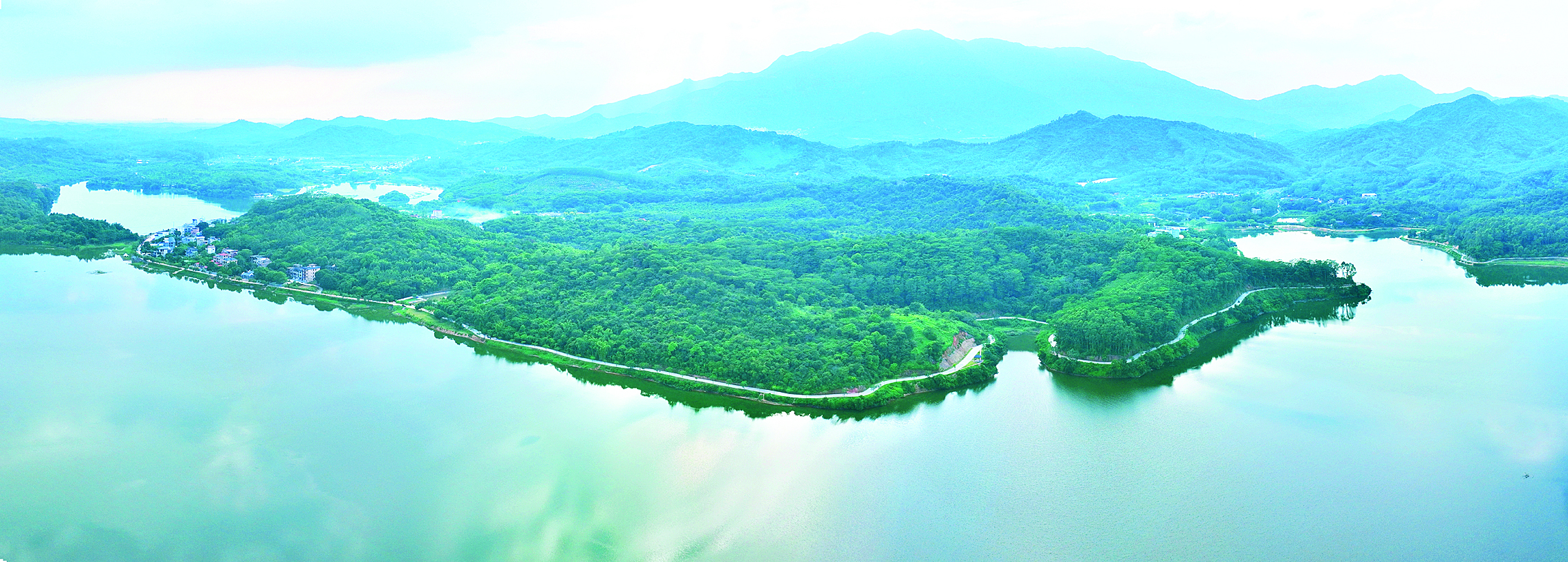 博罗县横河镇百里碧道风光旖旎。近看,湖水如镜,平静而清澈;远处,山峦连绵起伏,雾气缭绕,美不胜收。山水绕碧道,静谧优美,尽显自然生态之美,犹如一幅清新秀丽的山水画卷。