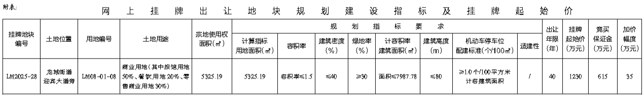 根据《招标拍卖挂牌出让国有建设用地使用权规定》(国土资源部令第39号)和《广东省土地使用权交易市场管理规定》(广东省人民政府令第304号)的规定,经批准,我局决定以网上挂牌方式公开出让1宗国有建设用地使用权。[公告具体内容请登陆惠州市公共资源交易中心土地与矿业网上挂牌交易系统(https://tdky.hzggzyjy.cn/)]