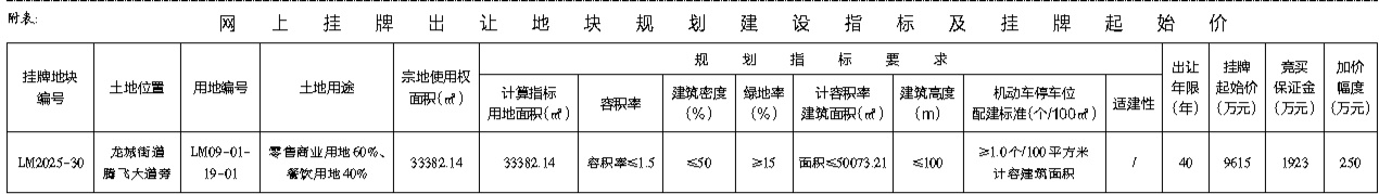 根据《招标拍卖挂牌出让国有建设用地使用权规定》(国土资源部令第39号)和《广东省土地使用权交易市场管理规定》(广东省人民政府令第304号)的规定,经批准,我局决定以网上挂牌方式公开出让1宗国有建设用地使用权。[公告具体内容请登陆惠州市公共资源交易中心土地与矿业网上挂牌交易系统(https://tdky.hzggzyjy.cn/)]
