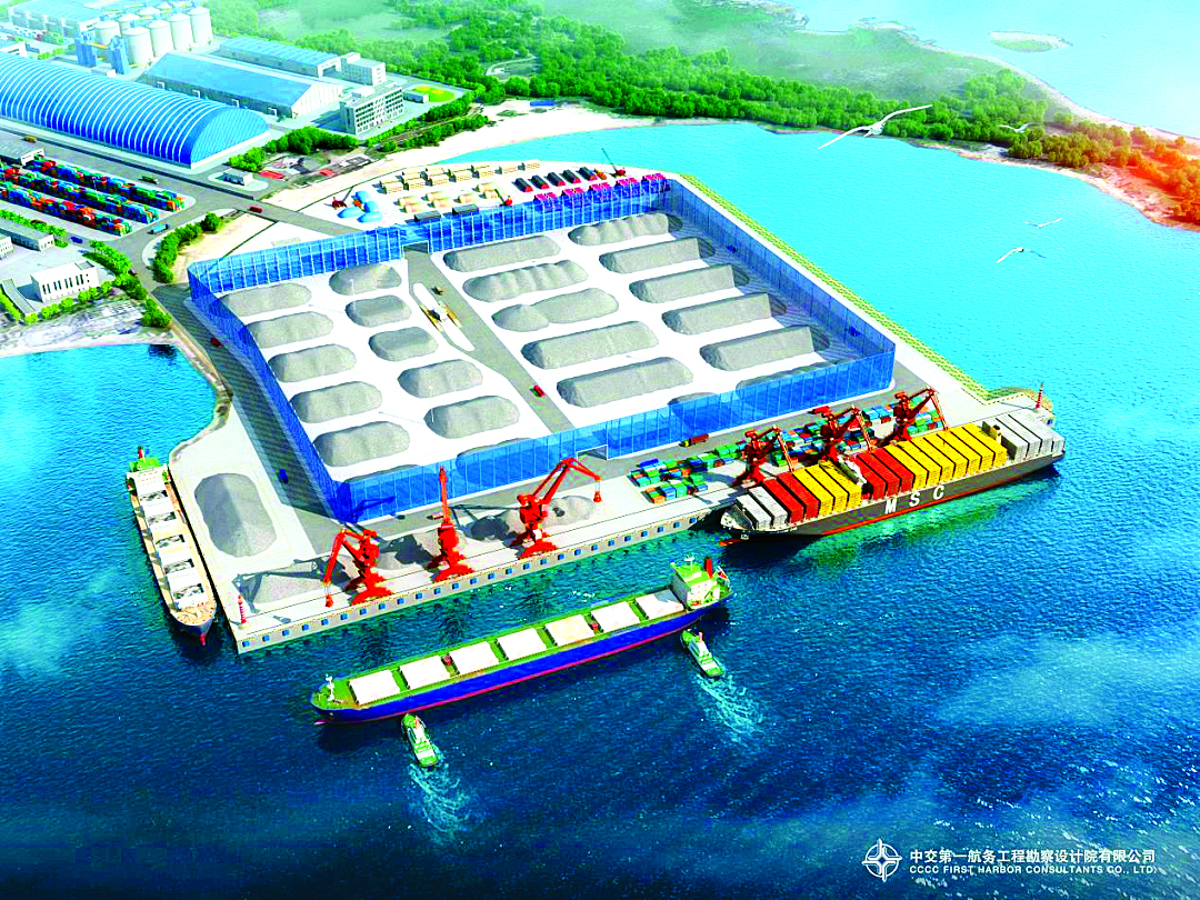 该项目拟建设1个7万吨级和1个2万吨级多用途泊位(结构均按靠泊7万吨级散货船设计),岸线长度477.8米,项目设计年吞吐量830万吨,其中散杂货730万吨,集装箱10万标箱。第一批建设内容主要包括陆域形成与水工建筑物。图为码头效果图。惠州日报记者曾静妍 翻拍