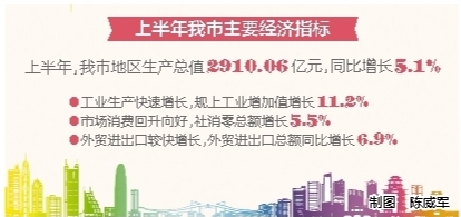 7月23日,惠州上半年经济数据出炉。惠州市统计局发布数据显示,上半年,我市地区生产总值2910.06亿元,同比增长5.1%。面对复杂严峻局面,我市坚持稳中求进工作总基调,顶住外部压力、克服内部困难,推动经济保持稳定增长。