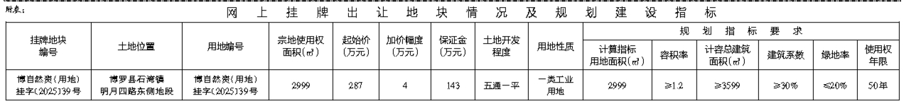 根据《招标拍卖挂牌出让国有建设用地使用权规定》(国土资源部令第39号)和《广东省国有建设用地使用权交易市场管理规定》(广东省人民政府令第304号)的规定,经批准,我局决定以网上挂牌方式公开出让下列1宗国有建设用地使用权。[公告具体内容请登录惠州市公共资源交易中心土地与矿业挂牌电子交易系统(https://tdky.hzggzyjy.cn/)]