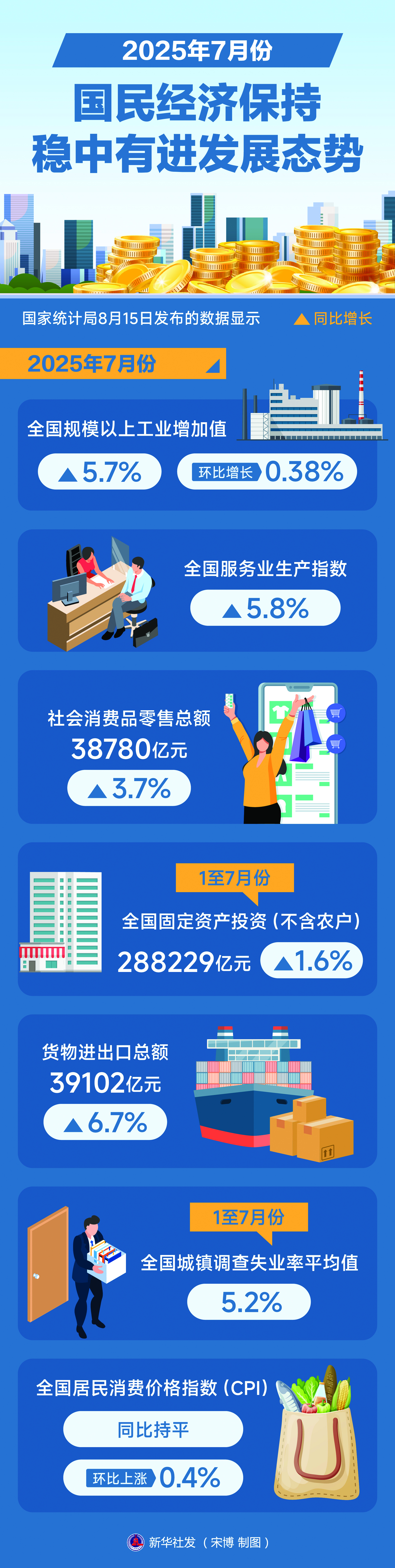 “总的来看,7月份宏观政策发力显效,国民经济克服外部环境复杂多变和国内极端天气等不利影响,保持稳中有进发展态势,展现出较强韧性和活力。”付凌晖说。