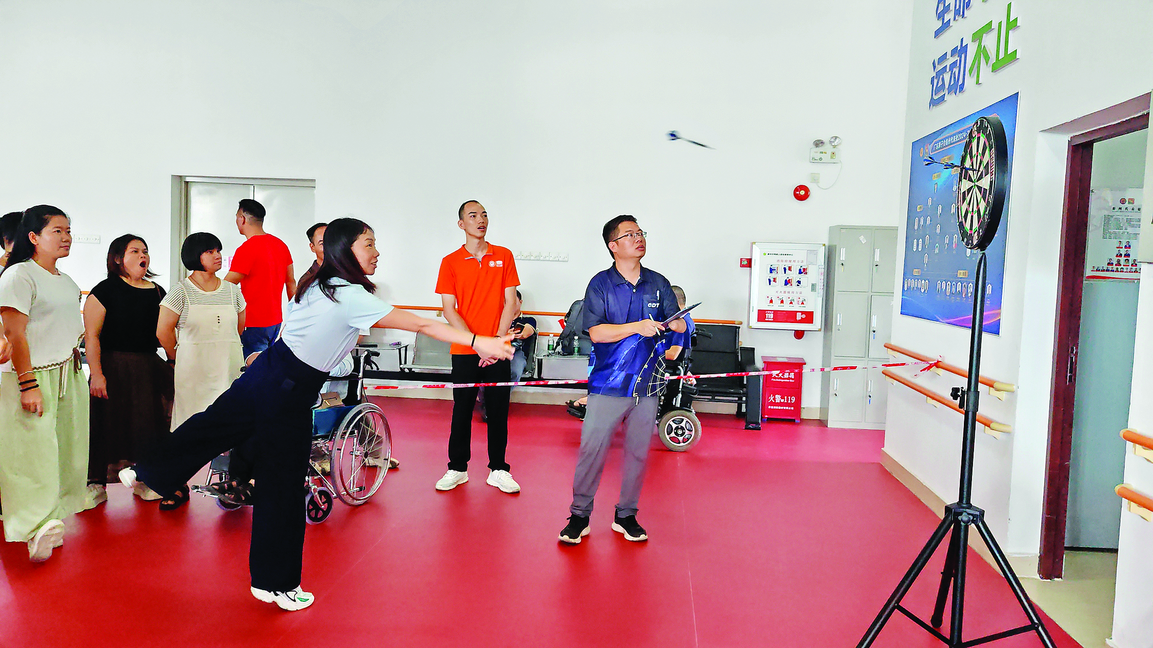 8月17日上午,惠州市残疾人综合服务中心文体楼内气氛热烈,由市残联、市肢协主办的“追梦大湾区,出彩人生路”趣味飞镖比赛暨景泰蓝工艺培训活动在这里举行,来自我市各县(区)的数十名残疾人齐聚一堂,以镖会友、以赛传情,在方寸靶盘间展现了“自尊、自信、自强、自立”的动人风采。