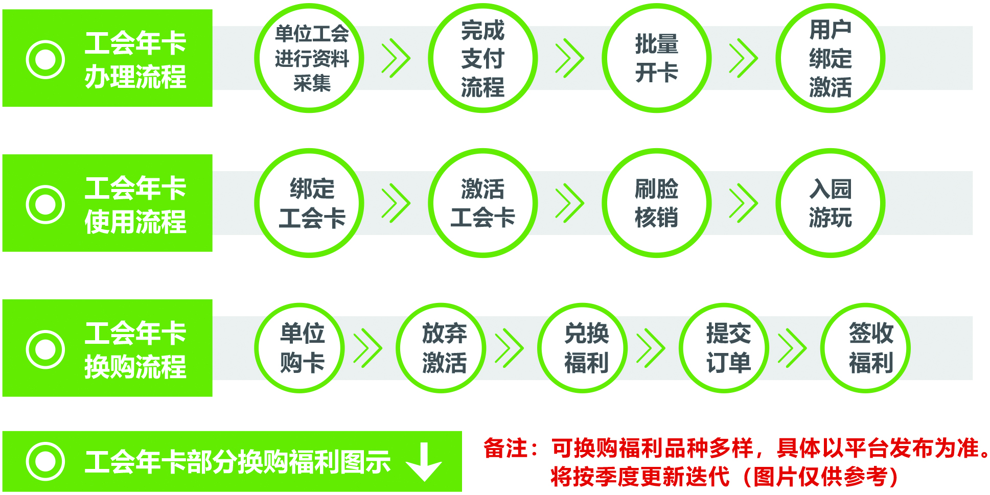 为切实减轻基层工会负担,今年9月1日至12月30日期间,全市各级工会集体购卡可享受8折优惠,每张卡仅需160元。每天不到5毛钱,畅玩惠州一整年,让工会经费真正惠及广大职工。未激活的工会卡还可灵活换购酒店住宿券、非遗礼盒等优质产品,满足职工多样化需求。