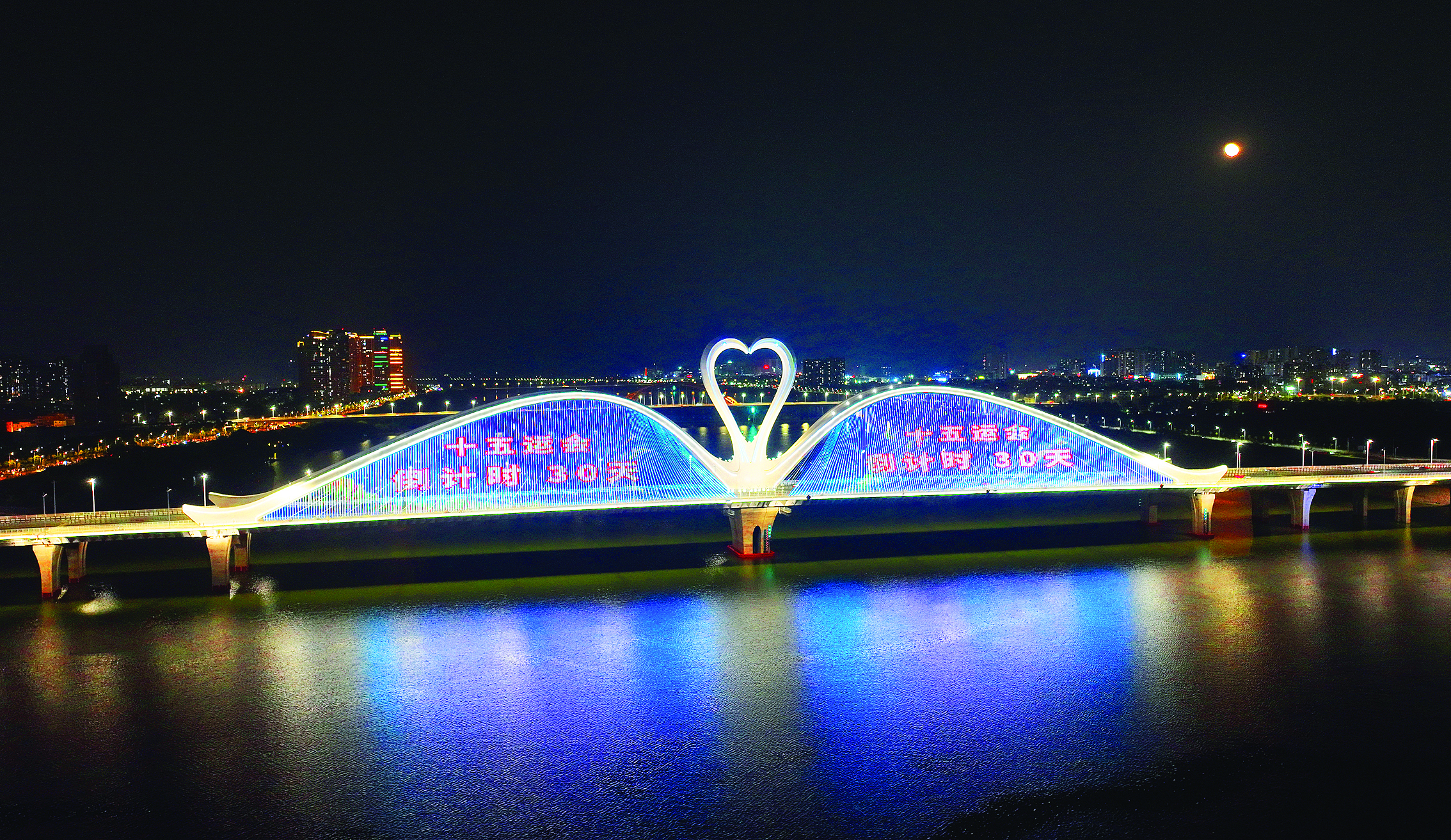 10月9日距离第十五届全国运动会开幕还有一个月。当晚,惠州市区鹅城大桥开启灯光秀,循环播放“激情全运会 活力大湾区”“十五运会倒计时30天”等宣传标语和火种采集仪式的口号,欢庆即将到来的体育盛事。