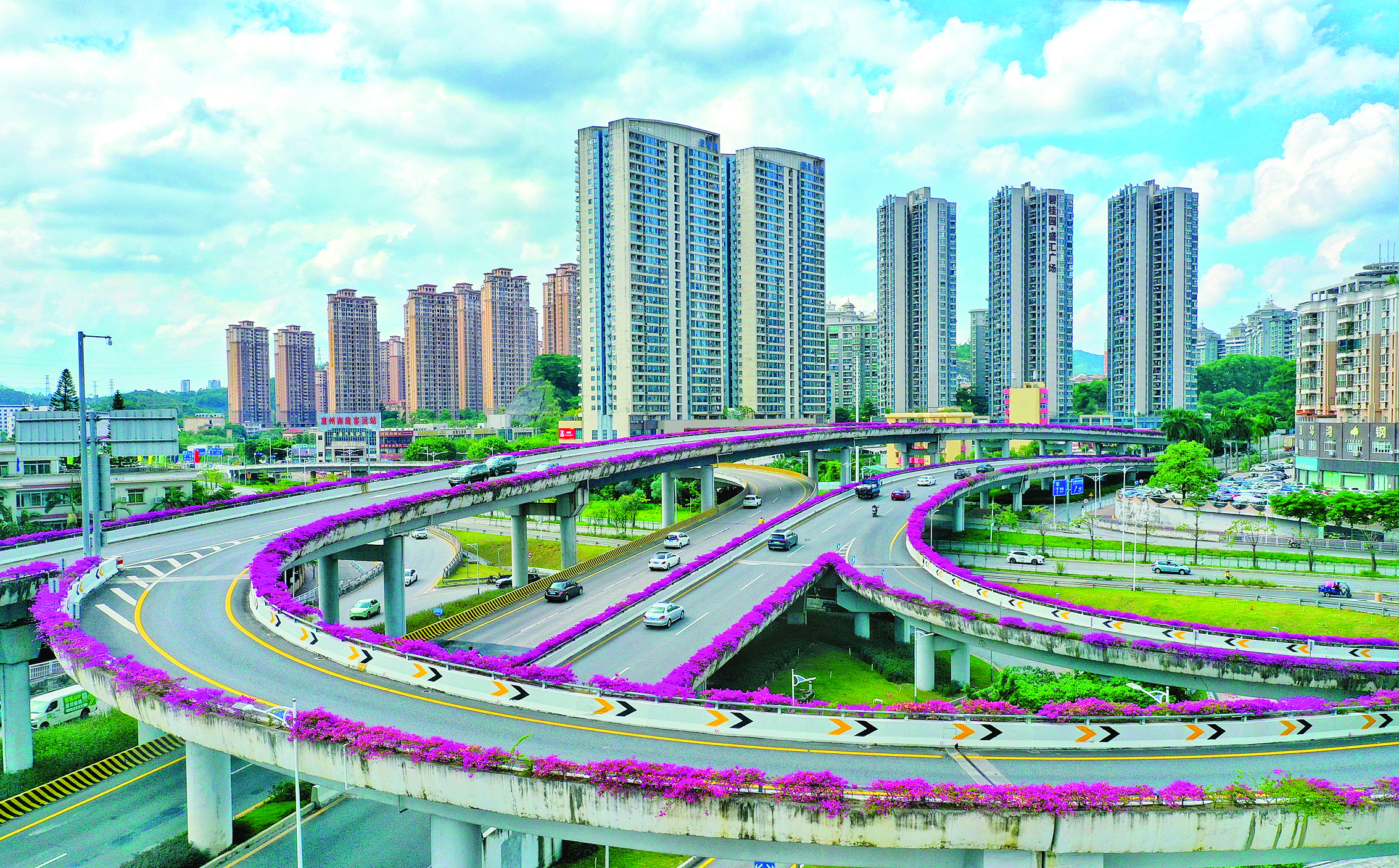 近日,惠州古塘坳立交桥迎来一年中最美的时节——桥栏两侧的簕杜鹃绚烂绽放,将原本的交通要道装点成色彩浓烈的“空中花廊”,成为市民眼中极具浪漫气息的城市新景观。
