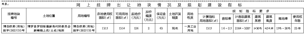 根据《招标拍卖挂牌出让国有建设用地使用权规定》(国土资源部令第39号)和《广东省国有建设用地使用权交易市场管理规定》(广东省人民政府令第304号)的规定,经批准,我局决定以网上挂牌方式公开出让下列1宗国有建设用地使用权。[公告具体内容请登录惠州市公共资源交易中心土地与矿业挂牌电子交易系统(https://tdky.hzggzyjy.cn/)]