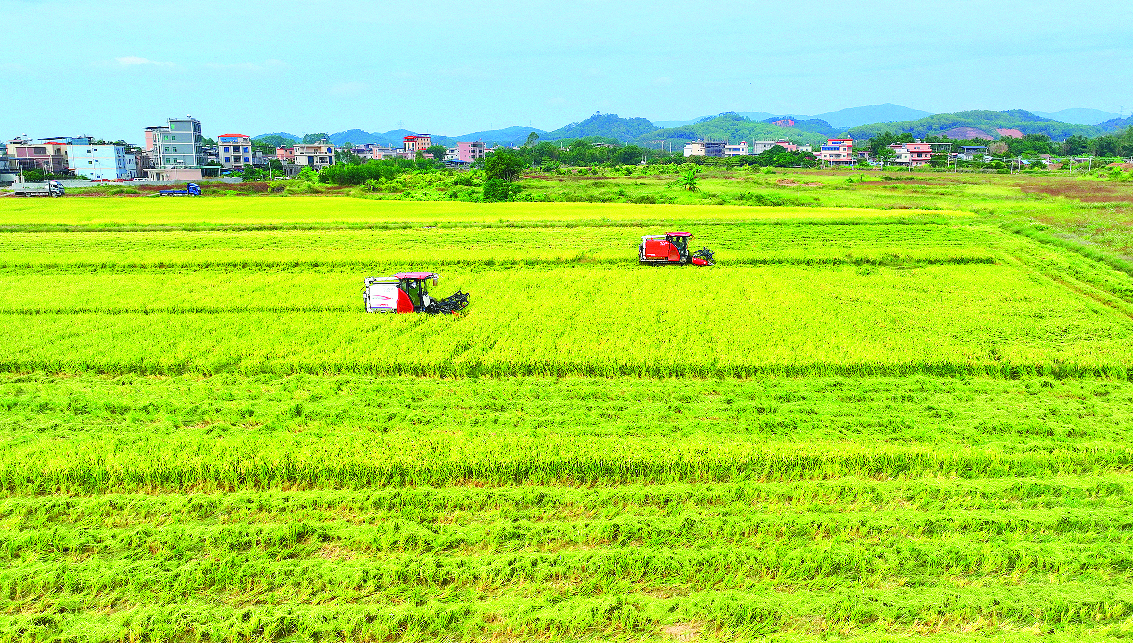 冬日暖阳下,仲恺高新区潼湖镇新光村连片的稻田里,收割机轰鸣作响,金黄的稻穗被整齐地卷入机舱,转眼变成颗颗饱满的稻谷。