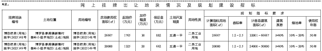 惠州市博罗县国有建设用地使用权网上挂牌出让公告