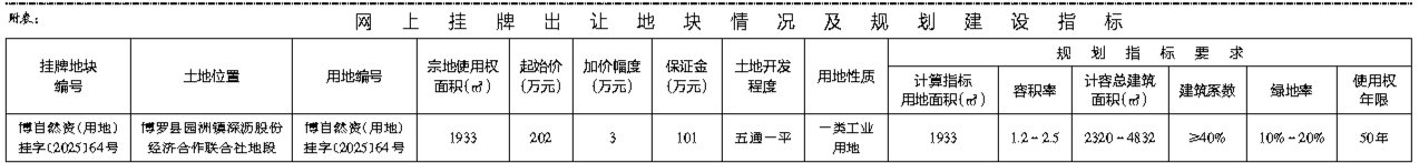根据《招标拍卖挂牌出让国有建设用地使用权规定》(国土资源部令第39号)和《广东省国有建设用地使用权交易市场管理规定》(广东省人民政府令第304号)的规定,经批准,我局决定以网上挂牌方式公开出让下列1宗国有建设用地使用权。[公告具体内容请登录惠州市公共资源交易中心土地与矿业挂牌电子交易系统(https://tdky.hzggzyjy.cn/)]
