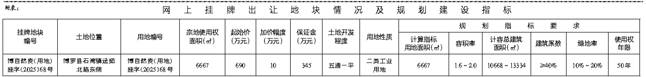 根据《招标拍卖挂牌出让国有建设用地使用权规定》(国土资源部令第39号)和《广东省国有建设用地使用权交易市场管理规定》(广东省人民政府令第304号)的规定,经批准,我局决定以网上挂牌方式公开出让下列1宗国有建设用地使用权。[公告具体内容请登录惠州市公共资源交易中心土地与矿业挂牌电子交易系统(https://tdky.hzggzyjy.cn/)]