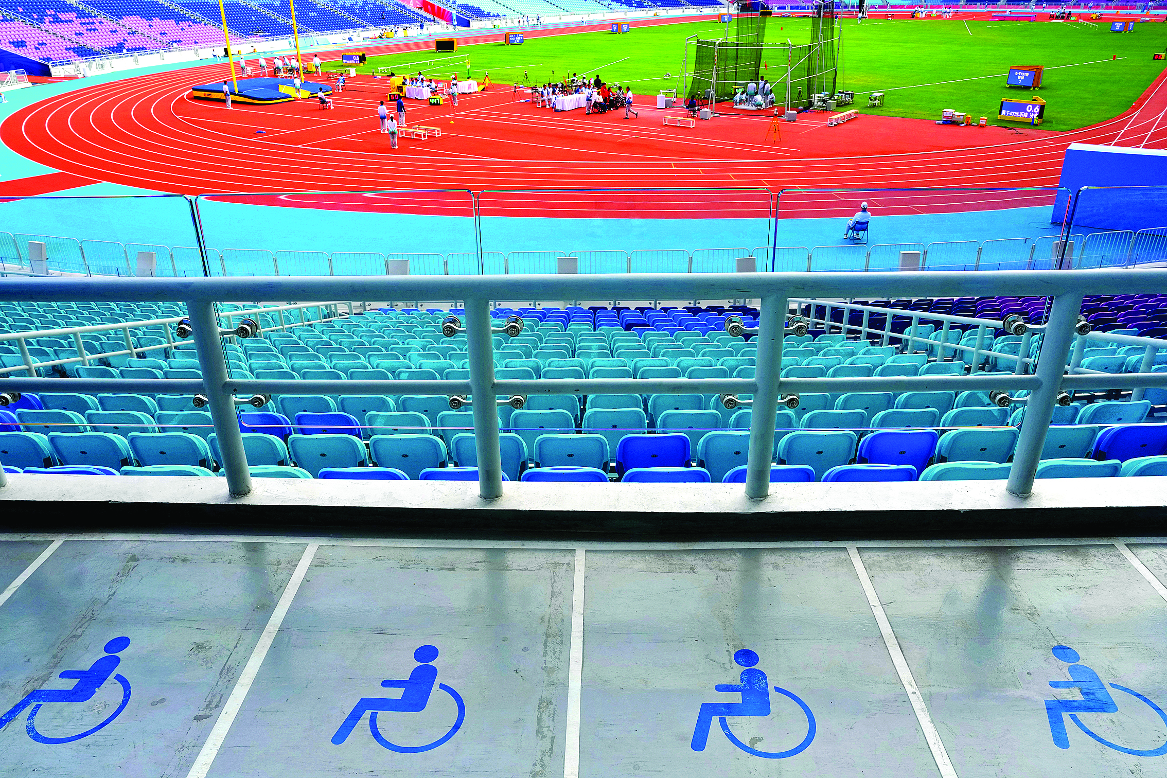 这是广东奥林匹克体育中心体育场看台区域的轮椅席位(12月7日摄)。广东奥林匹克体育中心与广州天河体育中心为筹备全国残特奥会赛事,持续推进无障碍环境建设。围绕通行、服务等关键环节开展提升改造,实现无障碍环境升级。相关设施在赛后将继续使用,为公众提供更加便捷的公共体育空间。新华社发