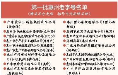 惠州日报讯 (记者叶丽莎)12月18日,惠州市商务局发布《关于公布第一批惠州老字号名单的通知》,认定18个品牌为第一批惠州老字号。其中,郭师傅、惠州宾馆、烧鹅仔等此前已获评首批“广东老字号”的7个惠州品牌同步纳入本批市级名单。