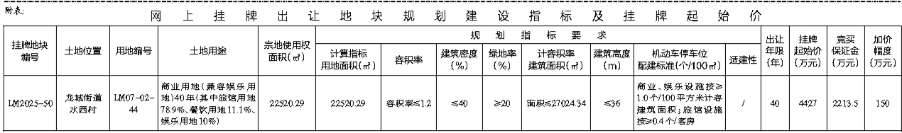 根据《招标拍卖挂牌出让国有建设用地使用权规定》(国土资源部令第39号)和《广东省土地使用权交易市场管理规定》(广东省人民政府令第304号)的规定,经批准,我局决定以网上挂牌方式公开出让1宗国有建设用地使用权。[公告具体内容请登陆惠州市公共资源交易中心土地与矿业网上挂牌交易系统(https://tdky.hzggzyjy.cn/)]