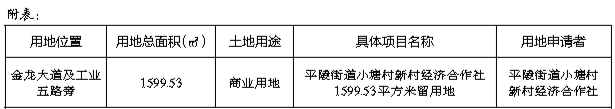 我局拟将1宗国有土地使用权以划拨方式供地。根据《关于贯彻落实〈国务院关于促进节约集约用地的通知〉的通知》(国土资发[2008]16号)有关要求,现对该1宗划拨用地的有关情况予以公示,公示时间为2026年1月4日至2026年1月14日(公示期间只接受书面意见)。公示期满无异议的,我局将拟定划拨供地方案报政府审批,办理划拨供地手续。
