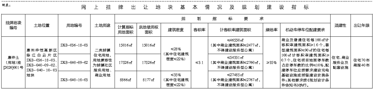 一、网上挂牌出让地块基本情况及规划指标要求(见附表)