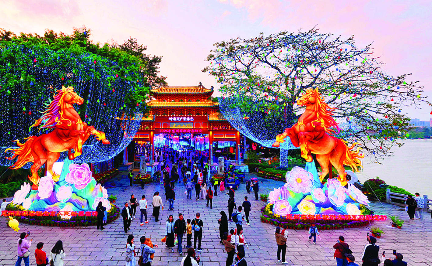 2月12日18时,随着“哇、太美了”的赞叹声响起,一组组花灯被骤然点亮,一片璀璨光华在惠州西湖水面上铺展开来。2026年惠州西湖新春灯会开启试亮灯,苏堤两岸瞬时化作光影长廊,近千名市民游客发出阵阵惊叹,手机闪光灯闪烁成星河,与湖中灯影交相辉映。据悉,本届灯会将于2月14日正式亮灯,持续至3月3日,为期18天,每天18:30至22:30点亮西湖夜空,为市民游客呈现精彩绚烂的视觉盛宴。