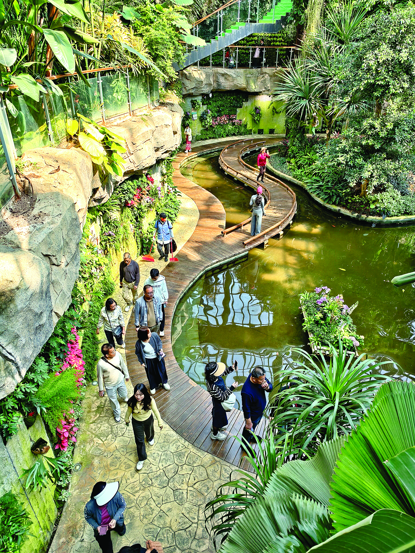 “春节期间,人气很旺,大年初一入园客流有3万人次。”惠州植物园管理服务中心相关负责人介绍,从大年初一开始,惠州植物园人流量不断增大。广大游客比较关注岭南特色花卉展示以及花景艺术,其中特色花卉有30余种,包括音符花、金红花、五彩芋等。