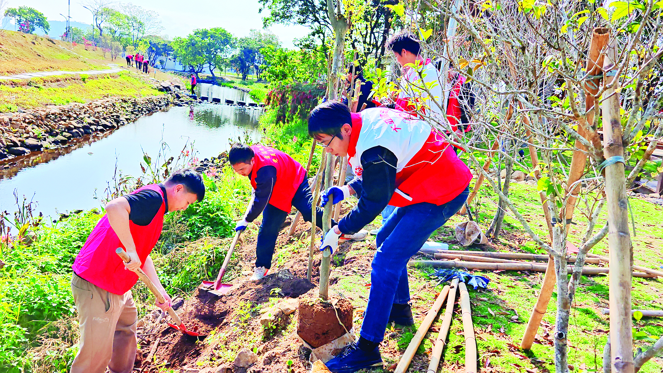 春风送暖,万物勃发。3月11日,大亚湾霞涌街道乡村绿化主题植树活动在上角村“千亩方”山海稻香田园项目绿美热科农场青龙河畔举行。大家三五成群、分工协作,现场一片热火朝天的劳动景象。欢声笑语间,一株株小叶紫薇迎风挺立,为河畔增添了勃勃生机。
