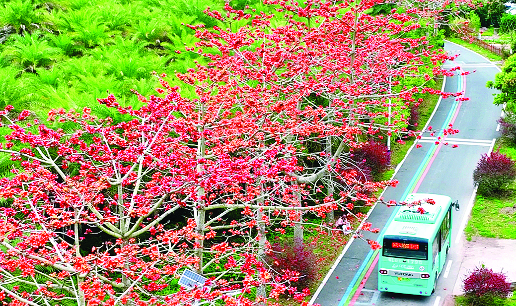 在澳头街道大涌村,村道两旁的木棉花迎来盛花期,饱满的花朵缀满枝头,格外夺目。满树红艳与崭新村道相映成趣,成为一道亮眼风景。不少市民、游客漫步花下,驻足观赏、拍照打卡,尽享生态宜居的幸福时光。