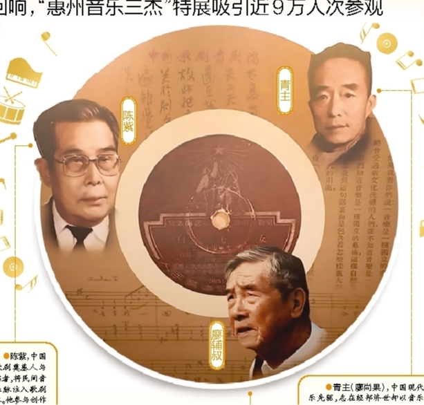 近年来,从“青主杯”音乐作品征评推介活动,到青主诞辰130周年系列活动,再到此次特展“圈粉”,惠州音乐三杰逐步从历史深处走入大众视野,他们的传奇故事将被更多人知晓,惠州的城市文化名片将愈发闪亮。