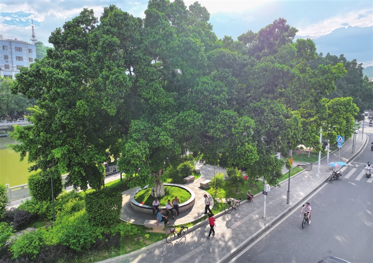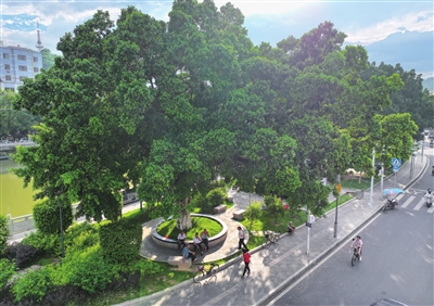 ■立秋以来暑热渐散,傍晚时分的河滨公园成了附近居民散步纳凉的首选之地。 近年来,紫金县紧抓新型城镇化建设机遇,不断建设和完善城市公共文体设施,在县城相继建成多个适宜群众休闲健身的公园、广场,增进民生福祉。河滨公园是品质县城提升的重点工程项目,位于县城金龙桥至尔崧桥北面沿江绿岛,面积约2200平方米,是一个全天开放式的休闲绿地公园。 文/本报记者彭冲特约记者黄从高甘建楼图/本报记者肖斌