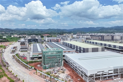 河源林安智慧物流园项目正在紧锣密鼓加快建设。 今年以来,东源县全力打好产业建设“大会战”,咬住项目不放松,向招商引资、企业培育与农文旅融合“三向发力”要增量,有力推动了项目洽谈、签约、竣工投产。截至7月底,该县今年新签约项目14个、新动工项目21个、新投产项目23个。本报记者杨坚摄