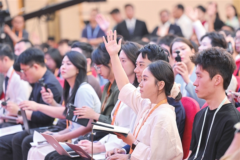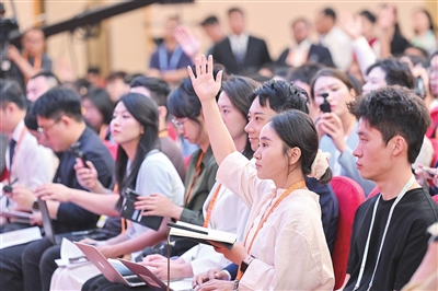 ■9月2日,记者举手提问。 当日上午,中国人民抗日战争暨世界反法西斯战争胜利80周年纪念活动新闻中心举办第三场记者见面会,日本籍八路军老战士小林清之子小林阳吉,法国医生贝熙叶之子贝石涛,苏联元帅瓦·伊·崔可夫之孙尼·弗·崔可夫,美中航空遗产基金会主席杰弗里·格林,英国友人大卫·柯鲁克、伊莎白·柯鲁克之子柯马凯等为中国抗战胜利作出贡献的国际友人或其遗属代表介绍对中国人民抗日战争的认识等方面情况,并回答记者提问。 新华社发