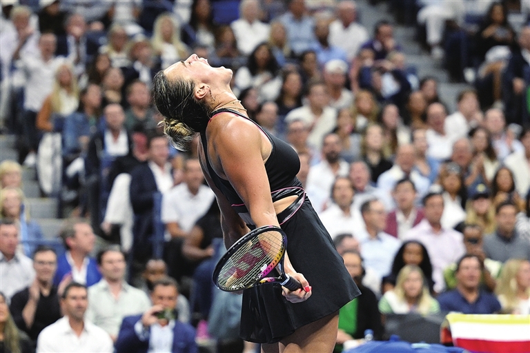 ■9月4日,萨巴伦卡庆祝比赛胜利。 新华社 发
