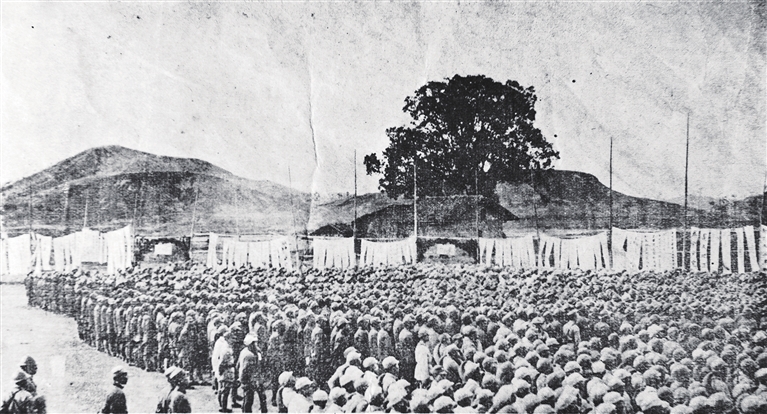 河源县人李锐光、龙川县人李奕传、河源籍少校营长房仲庄,和第六十六军的粤军战友们血战淞沪,以惨重的代价重挫日军久留米师团后,随即投入南京保卫战。南京失守,第六十六军成功突围,出征时2万多人的部队,只剩下约7800人。