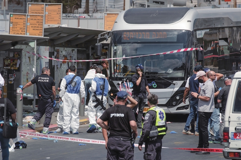 ■9月8日,警察在耶路撒冷枪击事件现场工作。 新华社 发