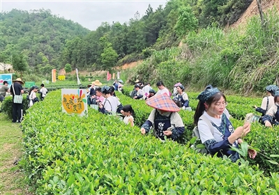 紫城镇的茶旅融合更注重文化赋能。作为当地茶旅核心项目,紫金客茶谷与黄花庄园着重打造沉浸式茶文化体验:游客可跟随茶农学习采茶技巧,在茶艺师指导下冲泡紫金蝉茶,参观茶叶加工车间,了解从鲜叶到成茶全过程。“我们不仅要让游客欣赏茶山美景,更要让他们感受紫金蝉茶魅力。”黄花庄园负责人曹越说。