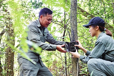 近日,在新港保护区大叶山管理站,新港保护区专业技术人员深入山林开展巡山护林工作,并在红外线相机布设点细致检查设备运行情况,确保这些设备能持续捕捉野生动物的踪迹。今年6月,新港保护区红外线相机不仅拍摄到国家一级保护动物中华穿山甲白天觅食的珍贵画面,还拍摄到国家二级保护动物水鹿在林间漫步的影像。