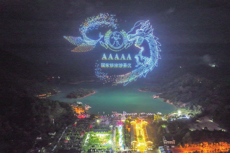 在新业态培育上,新丰江林管局党委抢抓低空经济发展机遇,成功开通3条直升机观光航线,“五一首飞”低空观光活动吸引众多游客打卡;结合节假日策划特色活动,清明举办“艾春”活动,让游客体验艾粄制作等客家民俗;成功举办QQ音乐·城市夜游2025万绿湖畔音乐季,瞬间点燃热情夏夜之火,让景区成为“夜间文旅新地标”;举行“湖韵风华·万绿新章”万绿湖文化旅游周系列活动,如开渔节、厨王争霸赛、百花巡游、无人机表演等,不断刷新游客的体验感,其中“万里挑一·星河入湖”11198架无人机灯光秀成功刷新“最多无人机同时飞行”的吉尼斯世界纪录。