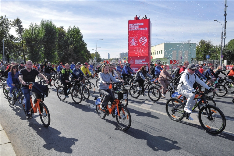 ■9月13日,人们在俄罗斯莫斯科参加骑行活动。 9月13日至14日,俄罗斯首都莫斯科举行多种活动纪念建城878周年。莫斯科是俄政治、经济、科学和文化中心,始建于12世纪中期,史册上关于莫斯科的最早记载见于1147年。 新华社发