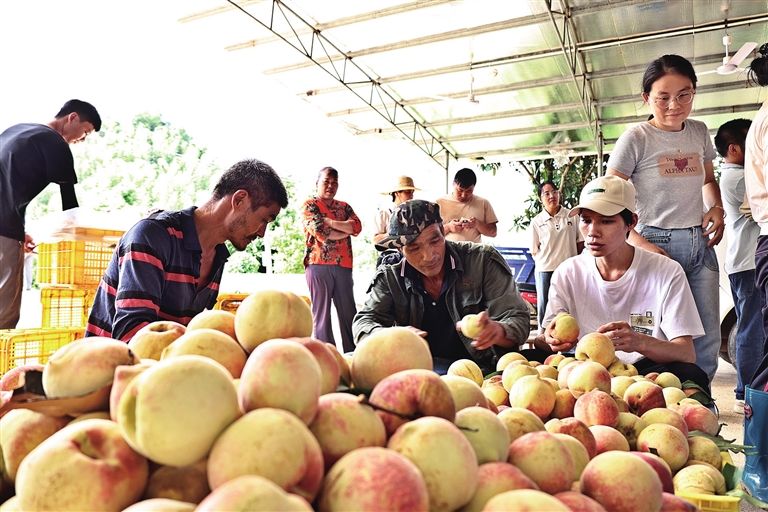 今年,陂头镇金秋蜜桃种植面积160余亩。9月中旬起,蜜桃已进入集中采摘期,采收时间约20天。果农们表示,今年的蜜桃品质优于往年,地头收购价可达每斤12元左右。