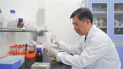 ■韩振林博士在实验室开展研究本报记者 杨李维 摄