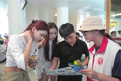 ■志愿者为游客讲解路线本报记者 李何山 摄
